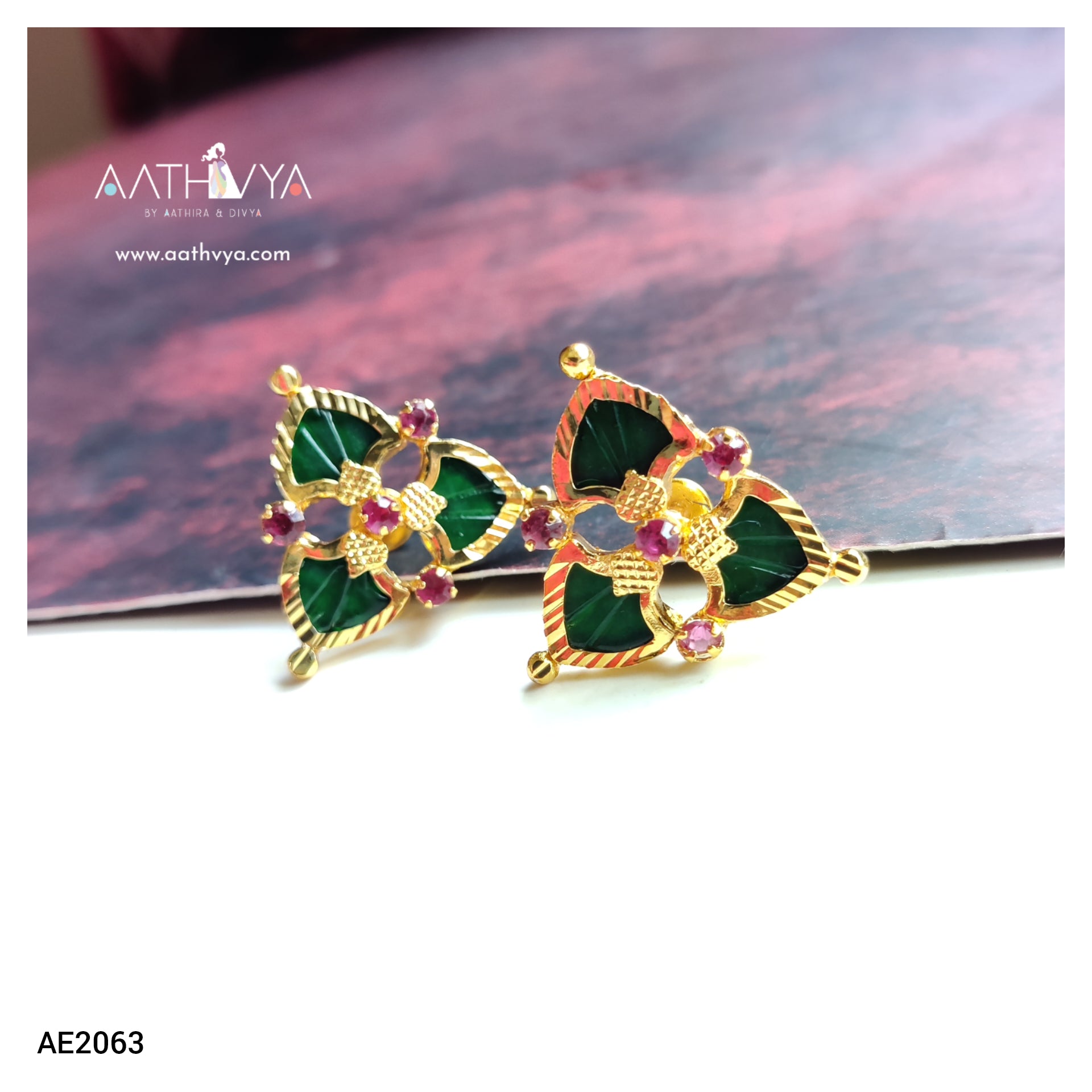 For the traditional jewellery lovers this festive season, here is your favourite palakka stud earrings available in a new design.