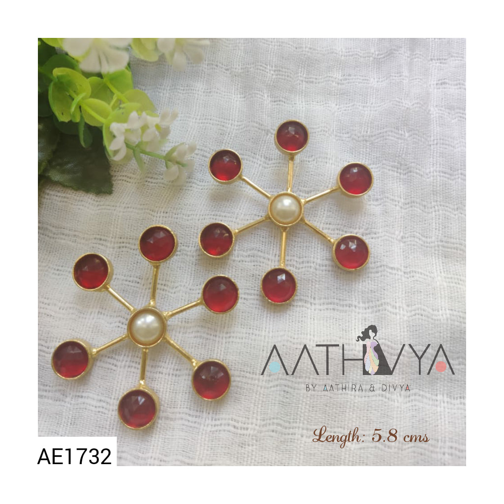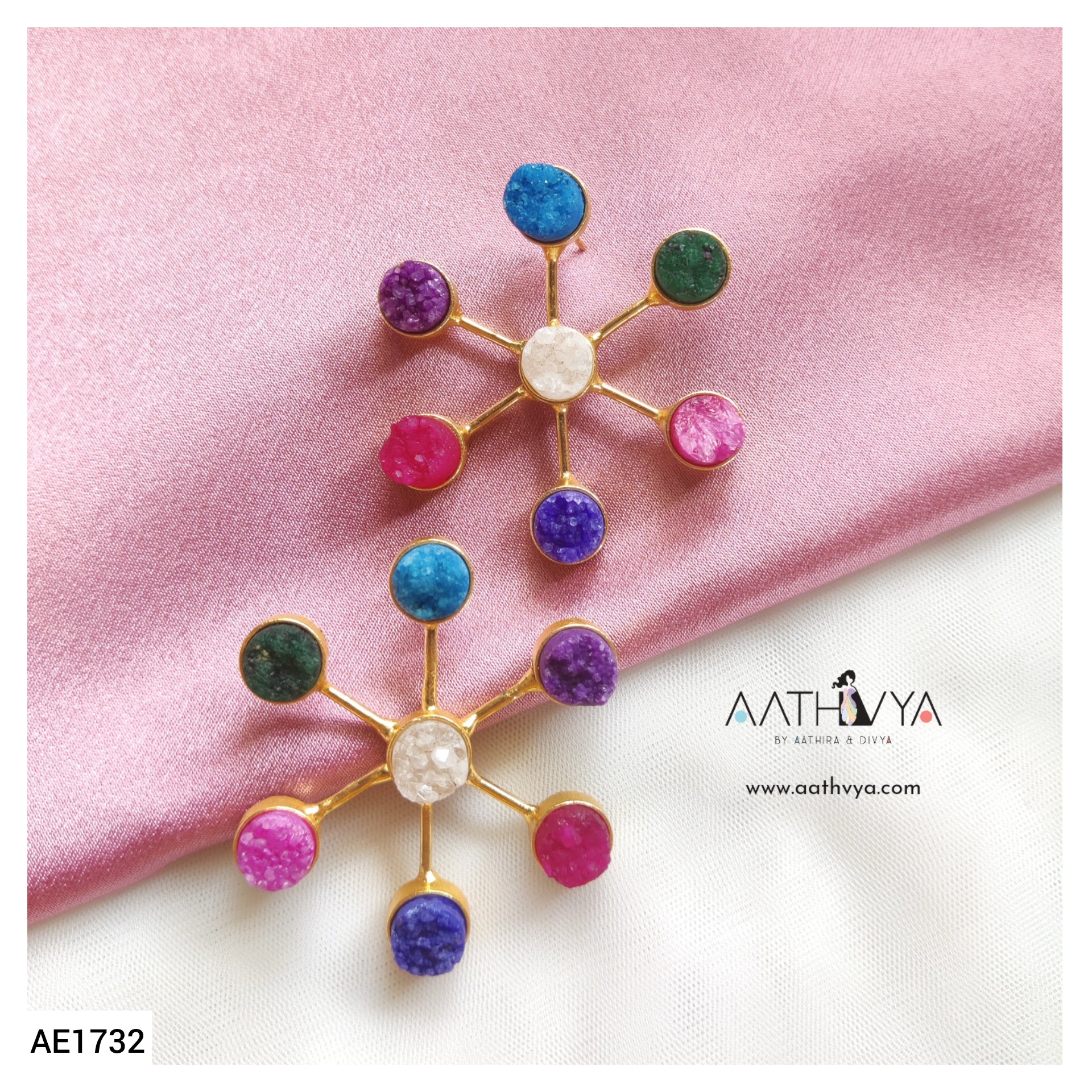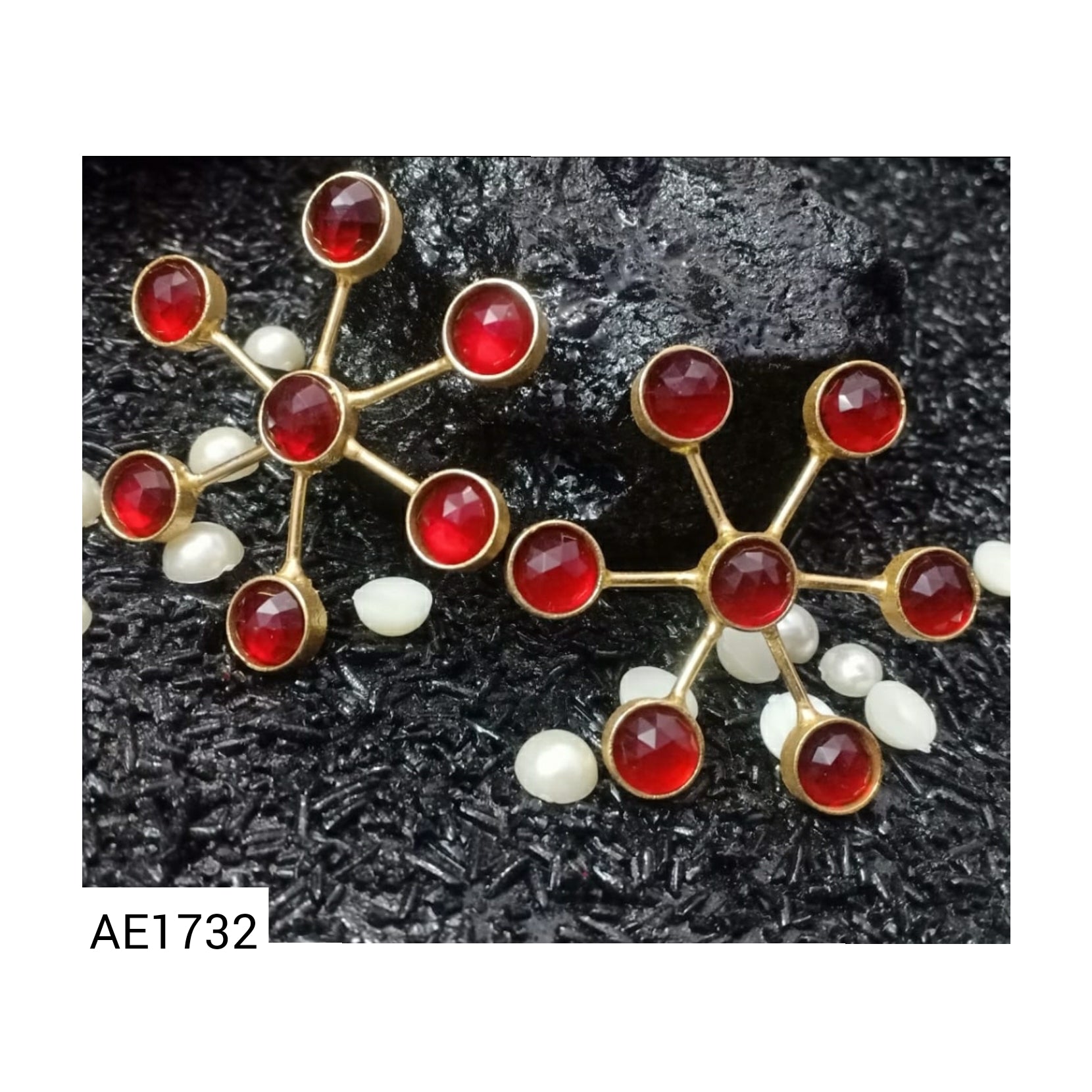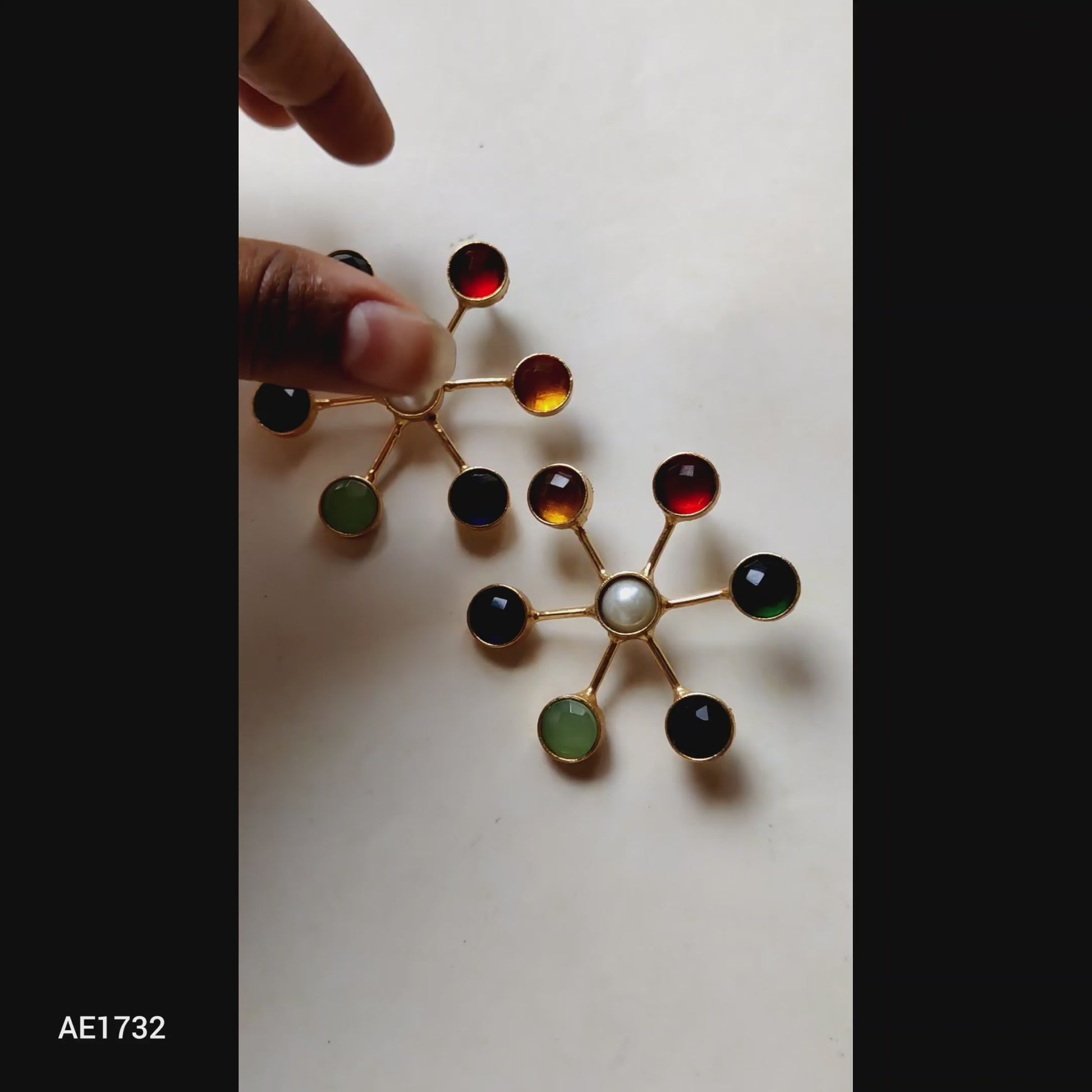 These contemporary stellar snowflake shaped earrings in brass embellished with stones are a statement piece in itself.