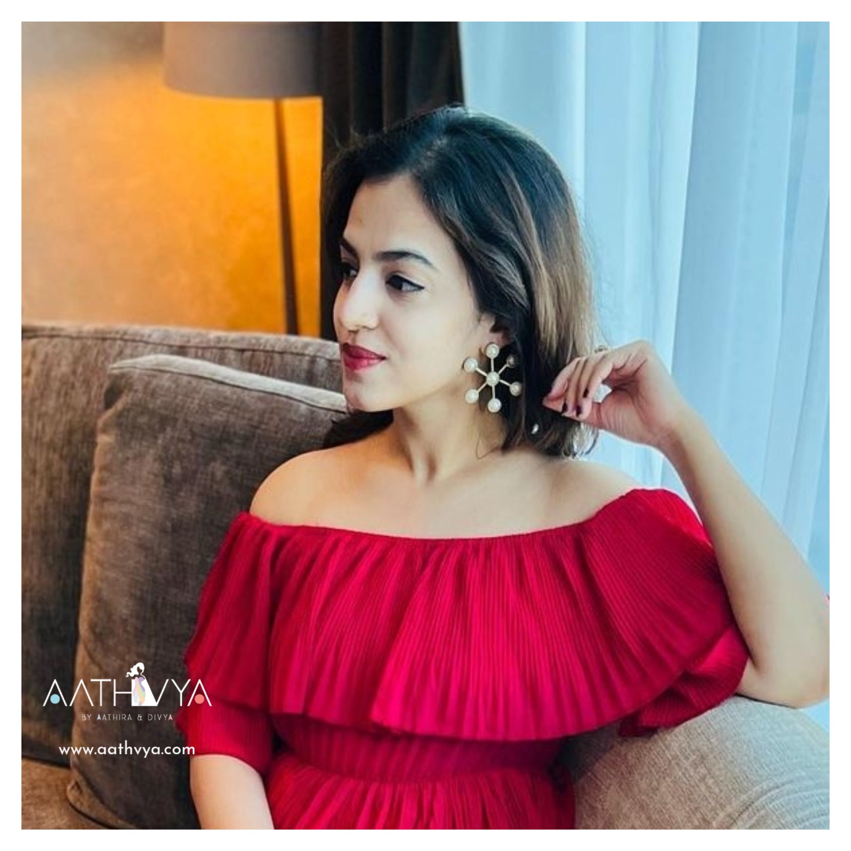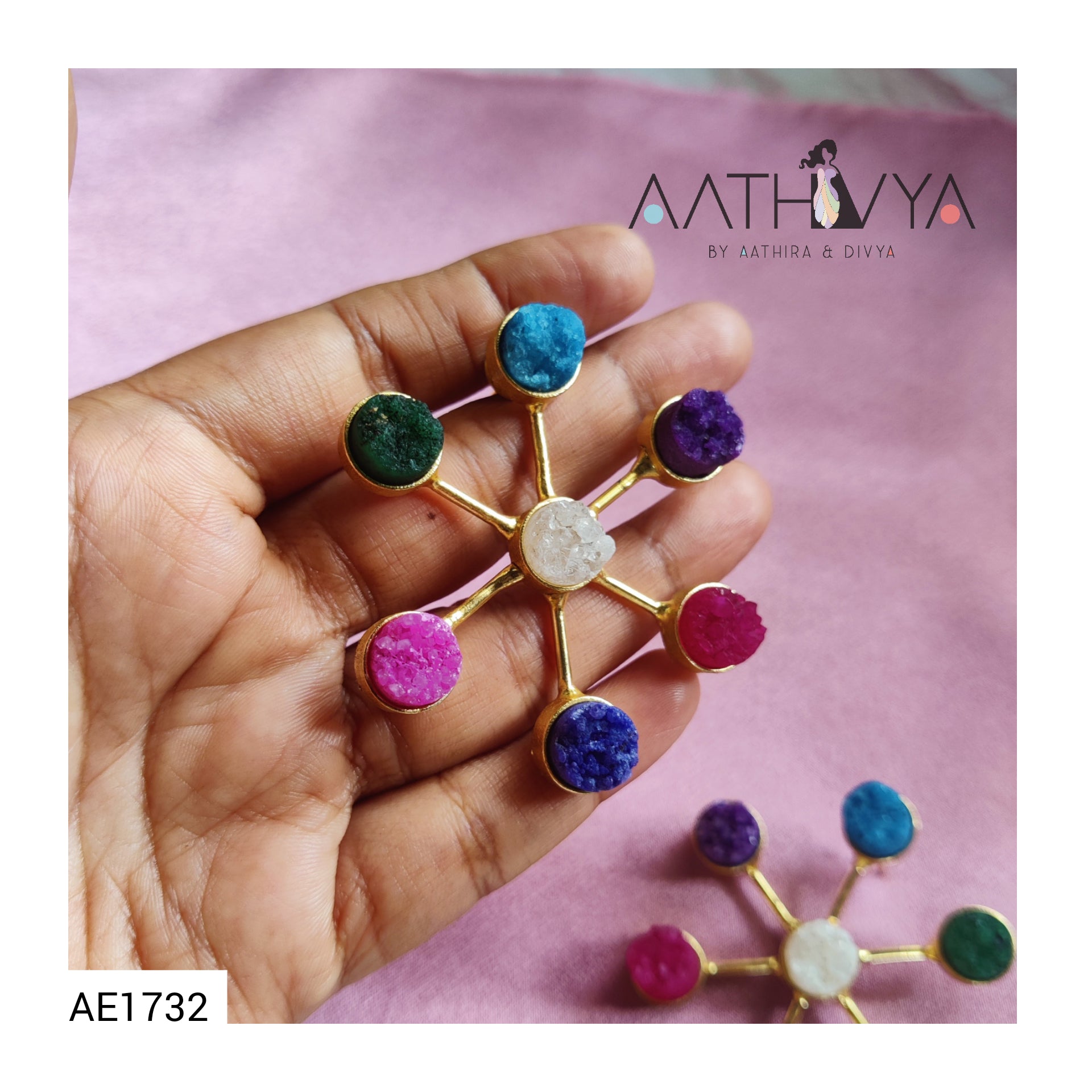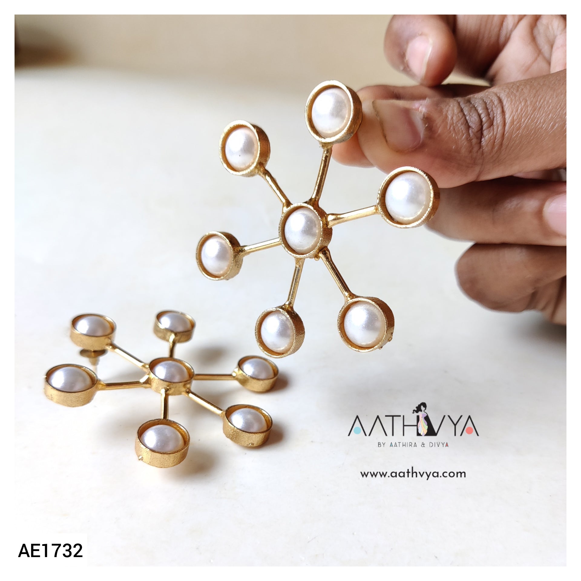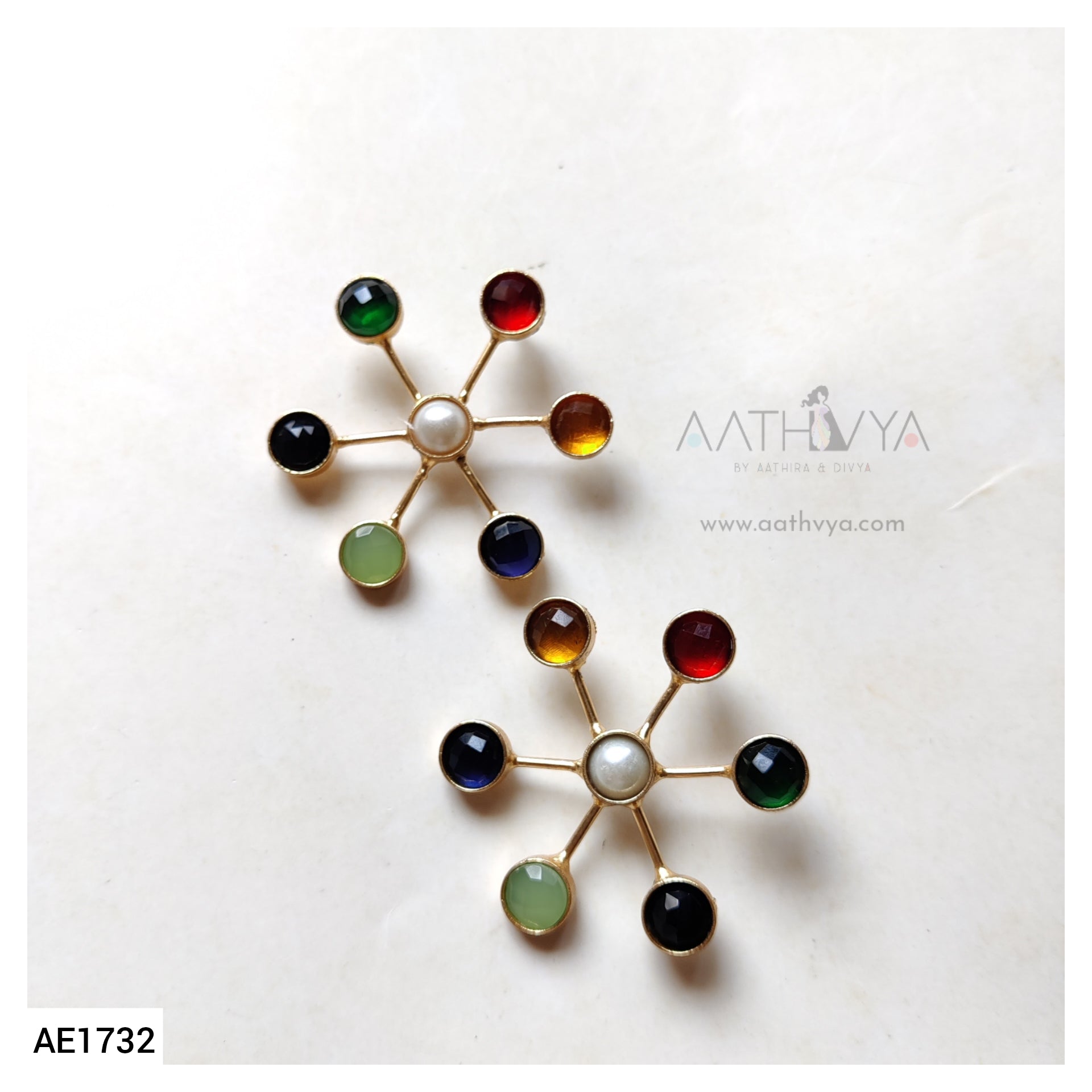 These contemporary stellar snowflake shaped earrings in brass embellished with stones are a statement piece in itself.