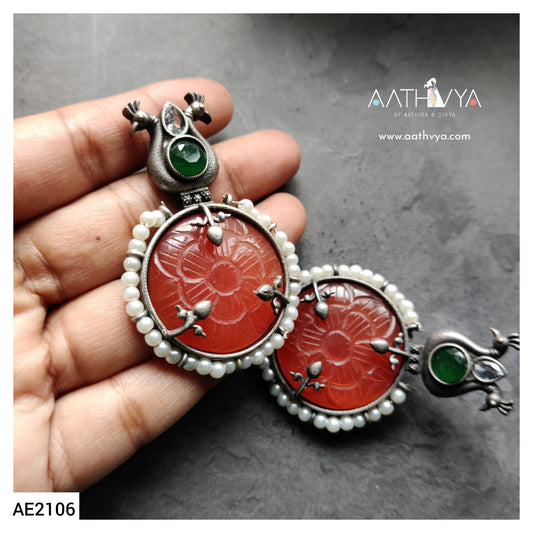 CARVED STONE PEACOCK EARRING - AE2106