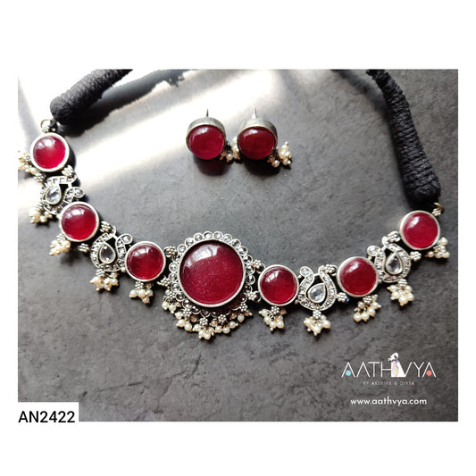 MULTICOLOURED ONYX & KUNDAN SET - AN1815
