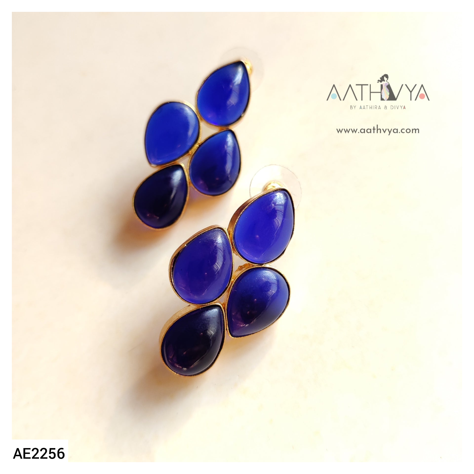 Indowestern styled 4 natural stone embellished brass earrings.