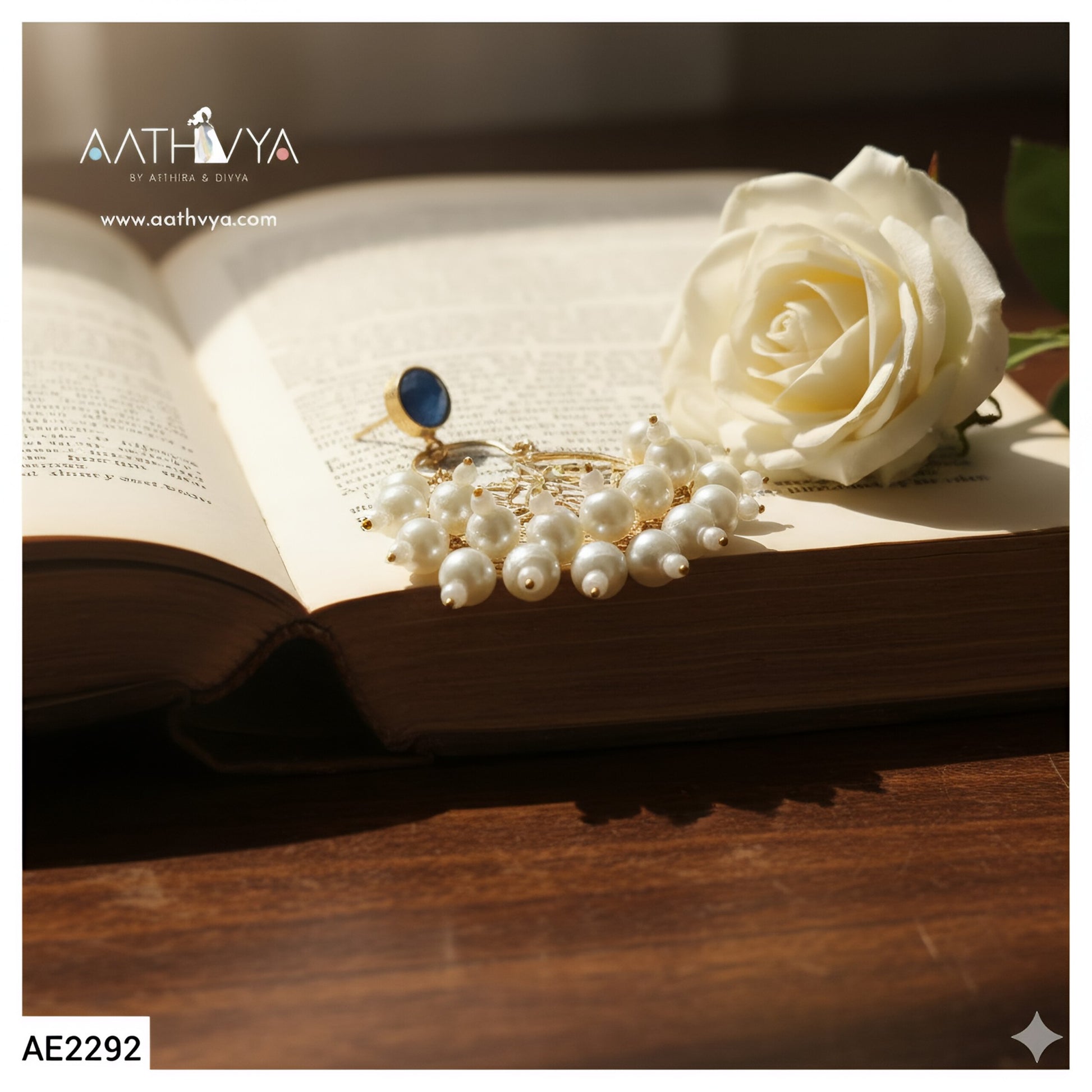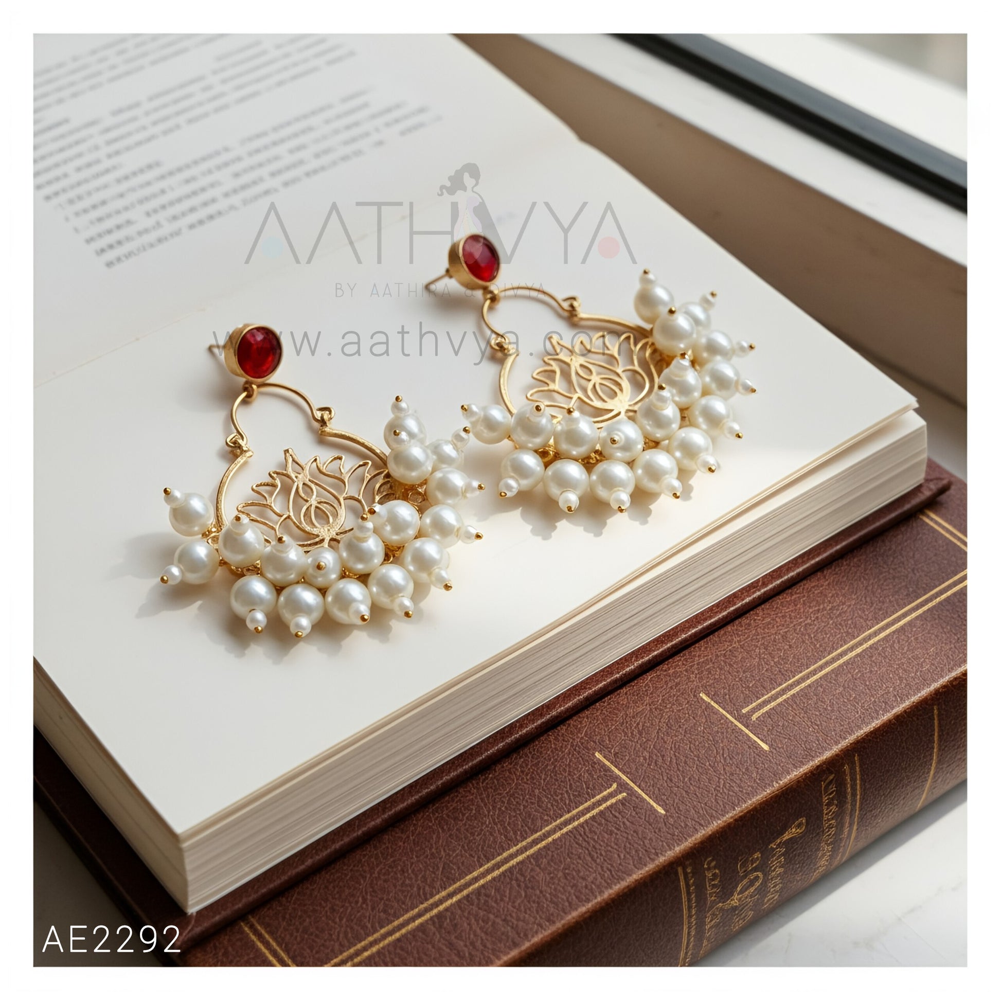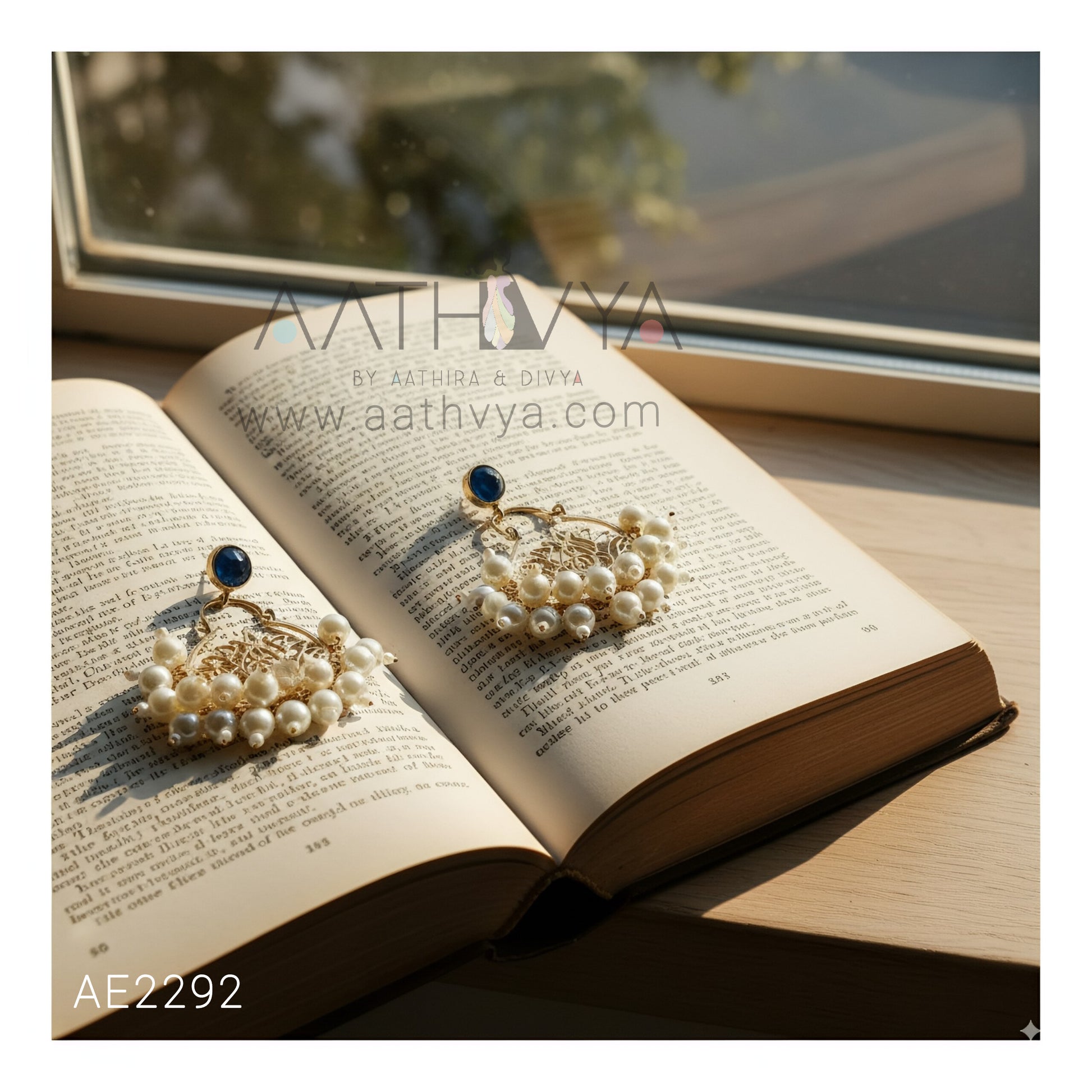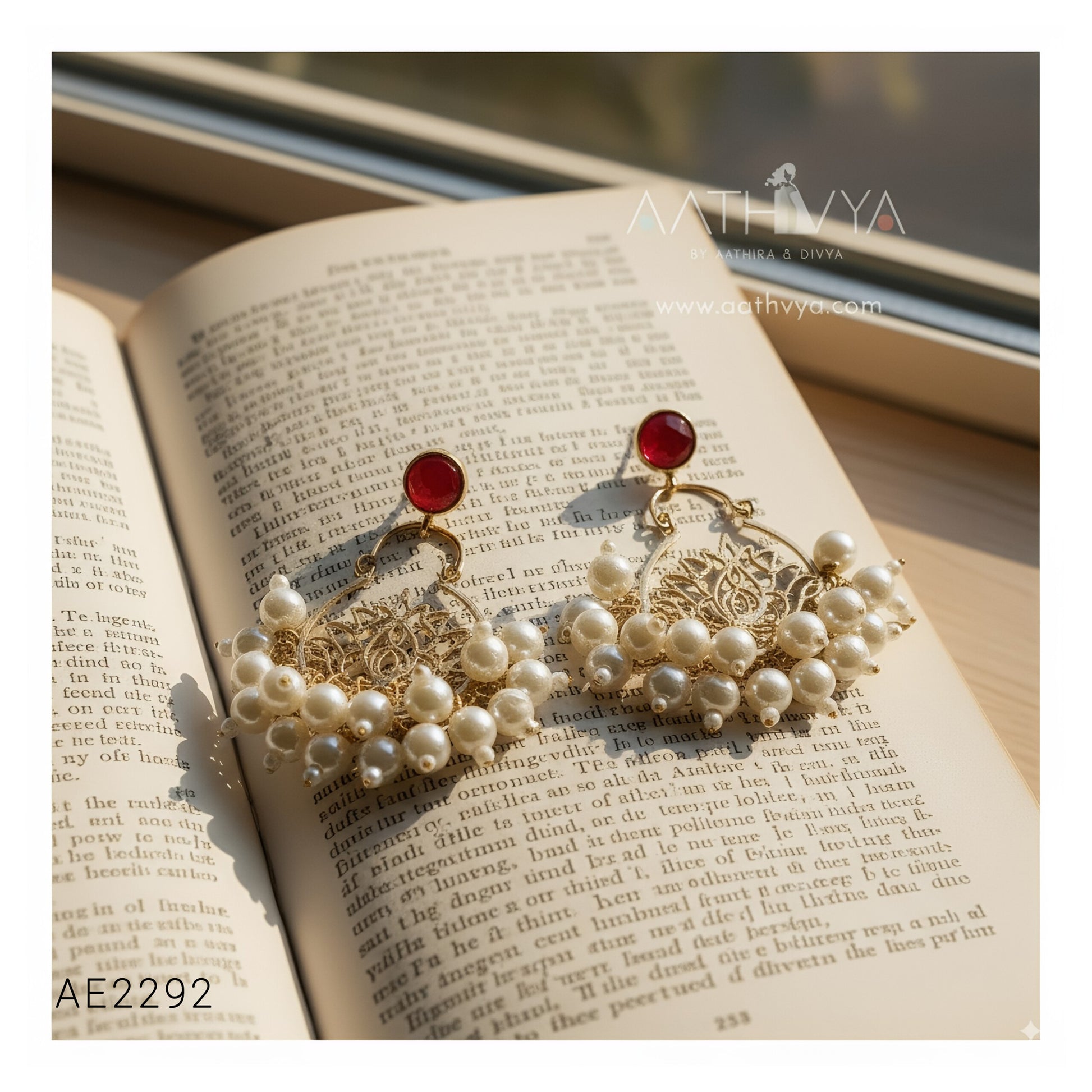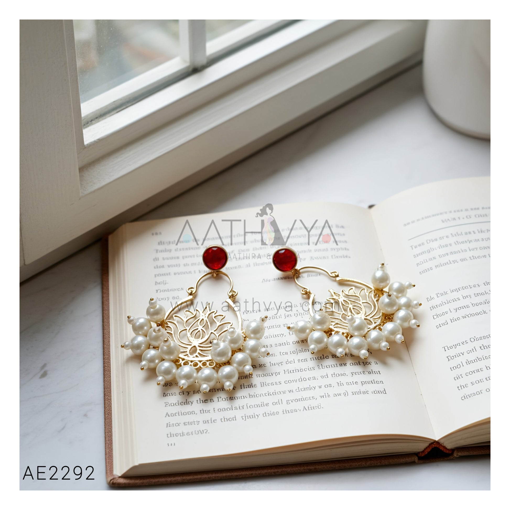 These long stone/pearl studded pearl bead embellished, intricately handworked brass statement chandbalis are your go to accessory this festive season.